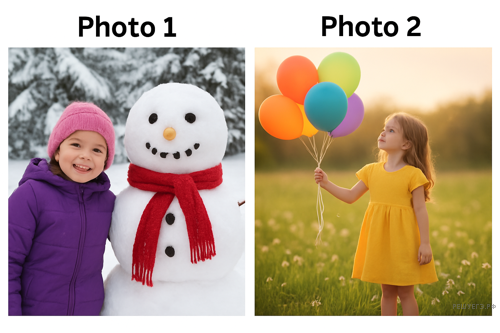 These are photos from your photo album. Choose one photo to describe to your friend.